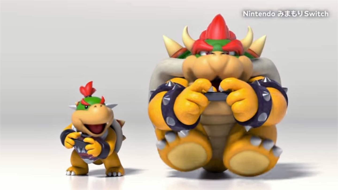 The video introduces Bowser and his little Bowser Jr. in various real-life situations like controlling the amount of time he plays, seeing how many hours he has invested in what types of games, allowing or restricting the use of online modes among many other things.