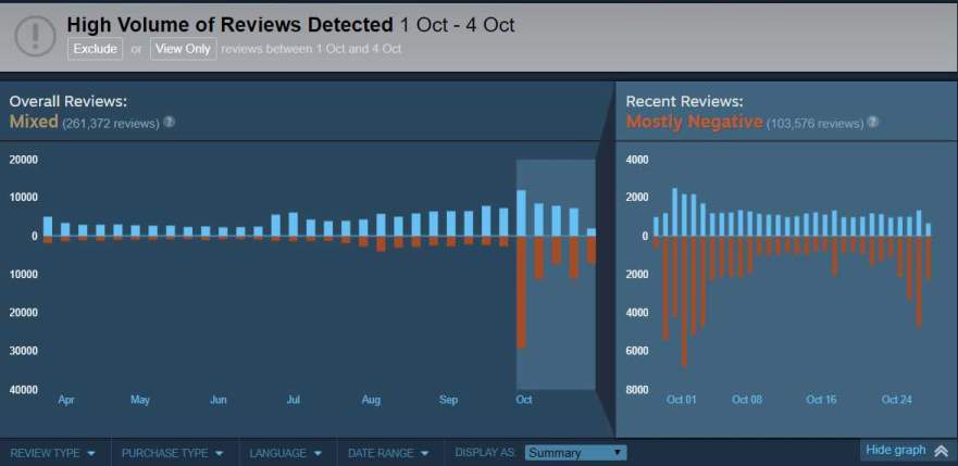 In the last 30 days, only 37 percent of positive reviews have been written on Steam, the rest expressed as negative. Only yesterday another 5000 negative reviews appeared on Steam.