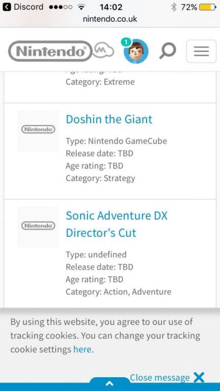 Recently, a new clue has emerged that reinforces this theory. One player claimed that he saw various GameCube games listed on the Nintendo of Europe website servers: Doshin The Giant and Sonic Adventure DX Director’s Cut. Although not the titles you would expect to see on Switch, the evidence might well refer to the imminent arrival of the Virtual Console with the games of GameCube.